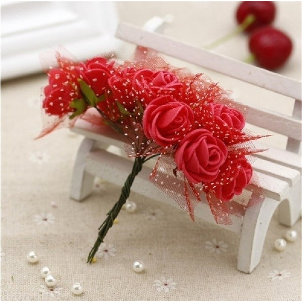 MINI ROSA EVA COM TULE DIVERSAS CORES SORTIDAS COM 10 UNIDADES
