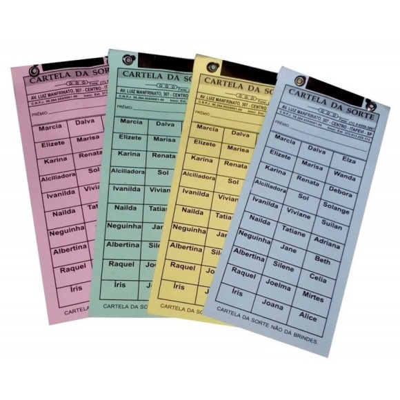CARTELA DE RIFA COM 30 NOMES